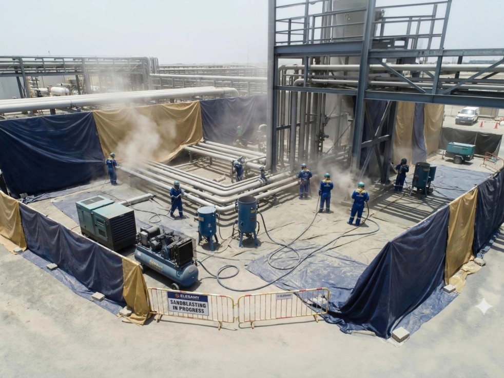 Sandblasting and painting during operations